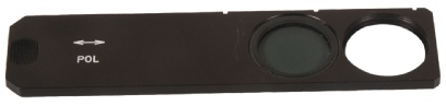 A Leitz polarising analyser filter that will slot into the space above the objective turret of Leitz Laborlux microscopes. In very good condition with little evidence of dilapidation.