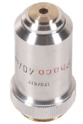 An excellent x40 phase contrast Phaco Leitz objective with standard RMS screw threat. Numerical aperture 0.65 and corrected for 170mm tube length and 0.17mm coverslip thickness.
