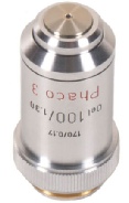 An excellent x100 phase contrast oil immersion Phaco 3 Leitz objective with standard RMS screw threat. Numerical aperture 1.30 and corrected for 170mm tube length and 0.17mm coverslip thickness.