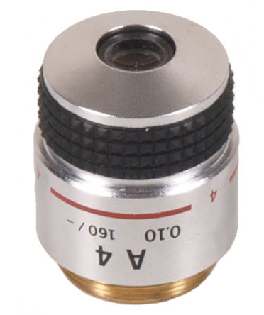 In very good condition this is an Olympus A x4 objective with a numerical aperture of 0.10 and corrected for 160mm tube length. Standard RMS screw thread makes it suitable for all standard microscopes.