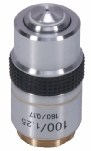 A Kyowa oil immersion lens x100 with a numerical aperture of 1.25. Standard RMS screw thread and corrected for 160mm tube length and 0.17mm coverslip thickness.