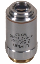 This a quality low power objective which is a recognition that these are, irrespective of brand, very difficult to obtain an excellent image. Meiji, without doubt has made the gap. This is a Uplan x2.5 objective with a numerical aperture of 0.07 and a working distance if 5.7mm. Infinity corrected and corrected for 0.17mm coverslip thickness. This as good as can be expected at this sort of price. Standard RMS screw thread.