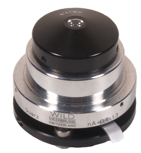 Individual Wild objectives that have become separated from their parent microscope are difficult to come by these days. This is one of the best of them. A Fluotar HI x100 phase contrast objective (RMS screw thread and 160mm tube length) with a numerical aperture of 1.30. Good condition.