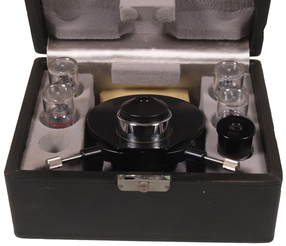 Complete with its original case this is a complete Wild Zernike phase contrast set, and all original which is quite rare these days. Made for the Wild M20 which in itself is a iconic microscope. The set consists of a Zenike phase condenser with also a bright field position as well as phase rings for each objective.