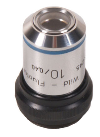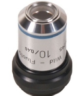 A Wild objective in very good condition. x10 fluotar with an exceptional numerical aperture of 0.40. Standard RMS screw thread and corrected for 160mm tube length and corrected for 0.17mm coverslip thickness. Condition excellent