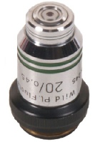 A Wild objective in very good condition.x20 fluotar with a numerical aperture of 0.45. Standard RMS screw thread and corrected for 160mm tube length.