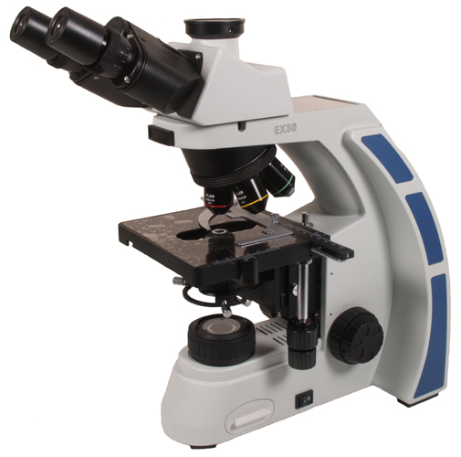 This is a microscope used only by ourselves to assess as potentially a new addition to our range. Suffice to say we are very impressed with its quality and will be adding it to our range very shortly. This is a trinocular microscope which shares the image between the binocular head and the trinocular tube. The objectives are excellent infinity corrected plan objectives x4, x10, x20, x40 and x100 oil immersion. Super wide field eyepieces x10 are suitable for spectacle wearers. The mechanical stage is particularly impressive and will allow two slides to be placed one behind another and then both viewed directly. Coaxial coarse and fine focus system. Additionally there is a digital screen to the front of the base which shows the magnification of the objective in use together with the colour temperature of the light . Kohler LED illumination. A superb state of the art microscope