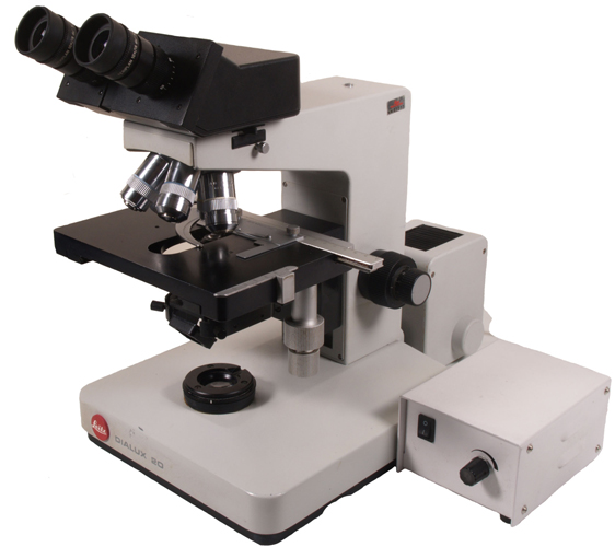 The turret has five Plan Fluotar Leitz objectives with particularly good numerical apertures x10 (0.30), x16 (0.40), x40 (0.70), x50 oil immersion (1.00) and x100 oil immersion (1.32). The eyepieces are Periplan x10 wide field that are suitable for spectacle wearers.