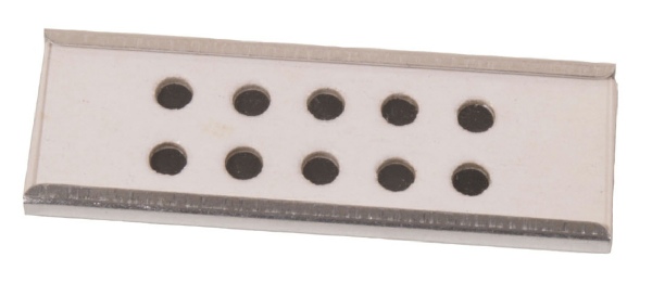 This is a set of 8 slide bases that have 10 individual circular ‘boxes’ usually used for displaying microfossils. The base is covered by a standard sized slide